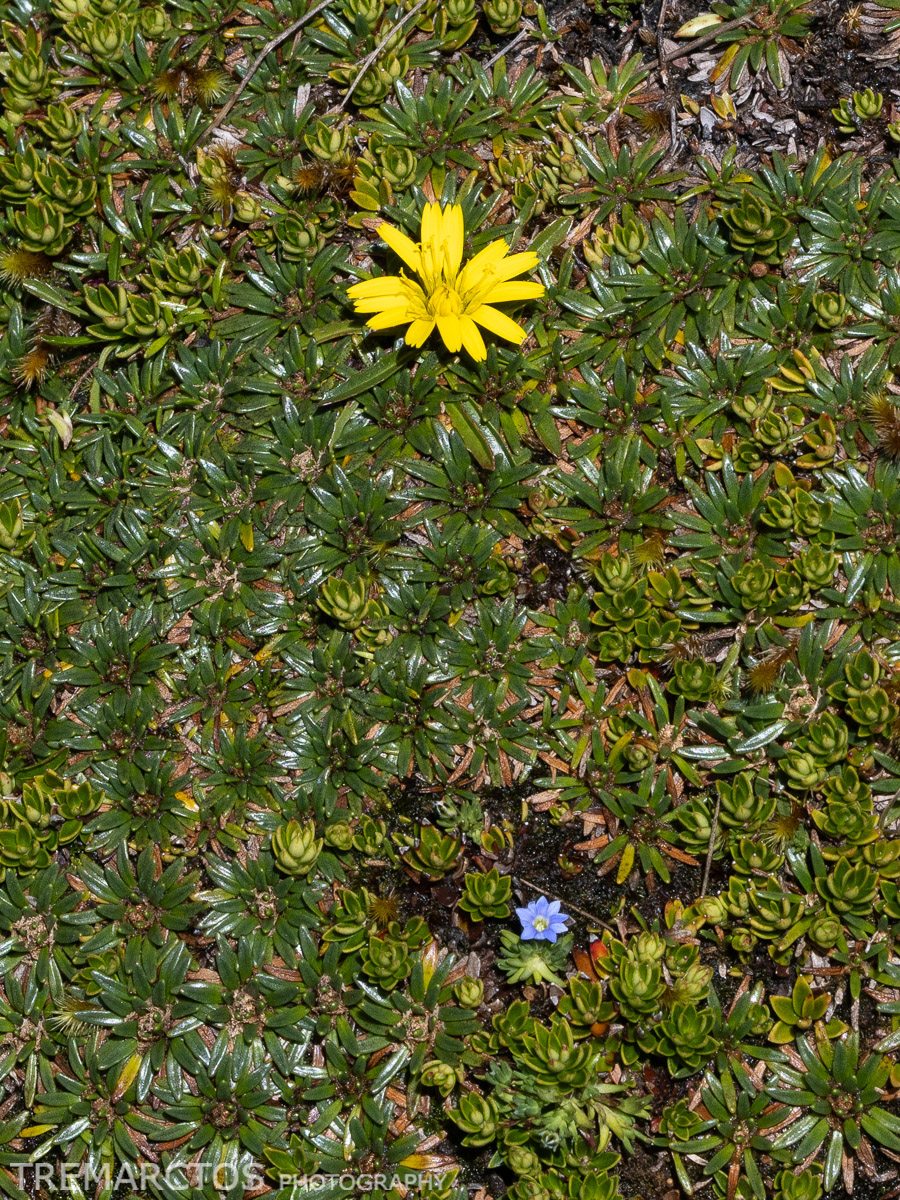 Water Mattress Plant with Gentiana sedifolia, and Hypochaeris