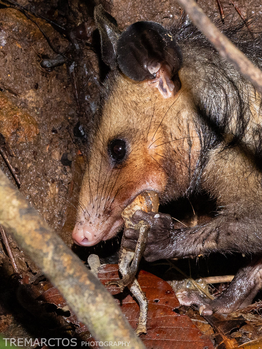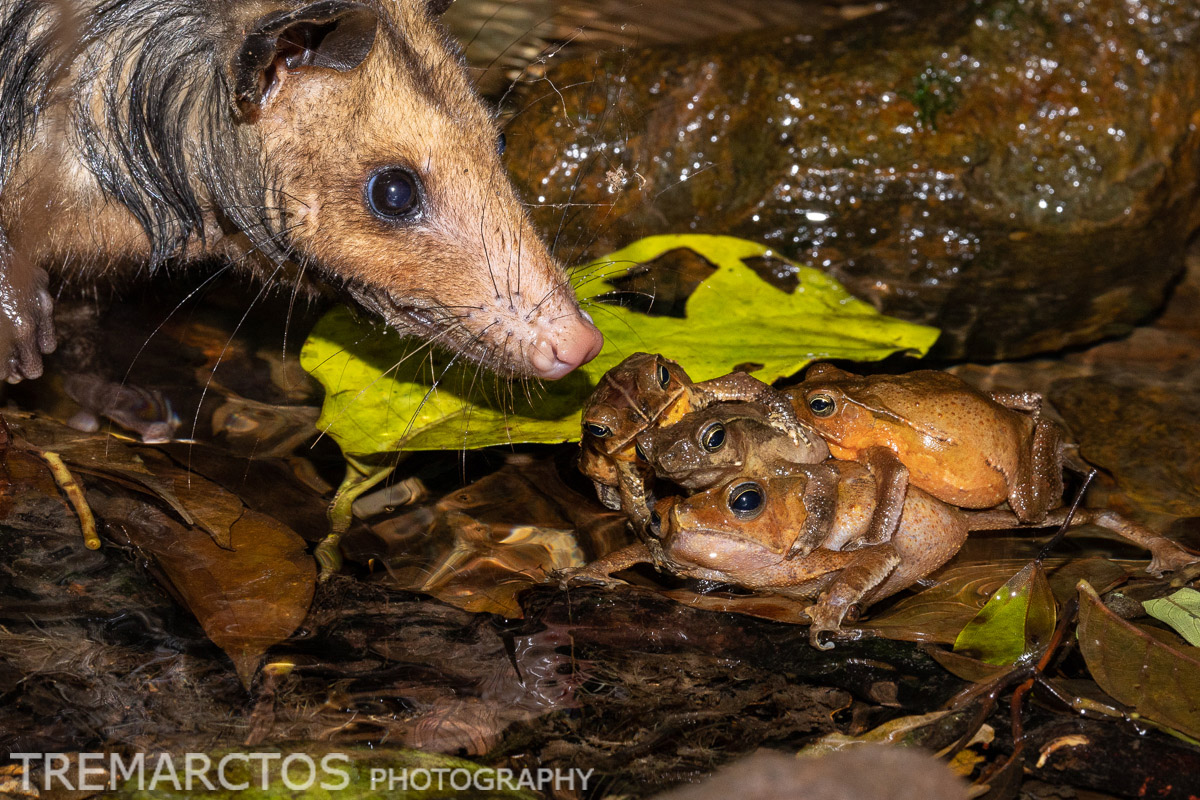 Southern Opossum Predating Sharp-nosed Forest Toad
